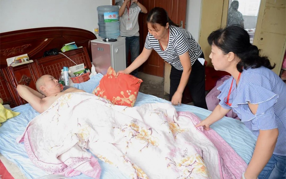 因意外事故導致行動不便的子陵鎮農民杜如華,每次見到前來幫助的孟麗華都會淚流滿面