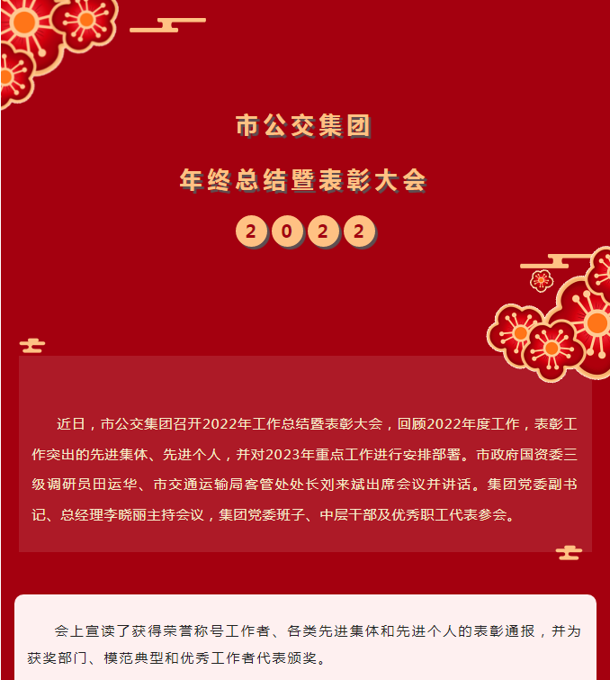 市公交集團舉行2022年度工作總結暨表彰大會