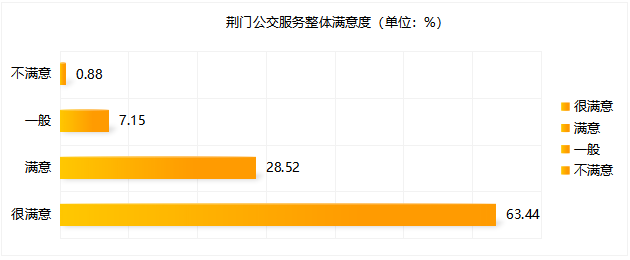 本次調查共收集有效問卷1471份,623條相關問題及建議。問卷涵蓋公交線網優化、文明服務、換乘便捷度、候車時間、乘車舒適度、智能信息建設等多方面內容。調查顯示,參與投票人群年齡結構主要集中在18~59歲,其中以40~59歲為主體。根據交通運輸部GB/T 36953.2-2018城市公共交通乘客滿意度評價方法,公共交通乘客滿意度指乘客對公共交通服務質量的滿意程度,評價程度設置為“很滿意”、“滿意”、“一般”與“不滿意”。問卷顯示荊門公交服務整體滿意度為91.96%。問卷顯示公交線網分布不均、線路不合理、換乘不便捷為主要服務訴求,公交線路分布不均為“不滿意度”投票最高問題;主干道公交優先通行權為服務訴求投票最高關注點。 此次問卷調查,感謝廣大市民乘客的積極參與,市公交集團將結合實際,認真聽取、采納乘客提出的意見及建議,予以改進: 關于線路運營方面,對5路線(圣境山—海慧)、88路線(東寶碧桂園—楊家橋)、58路線(碧桂園北—漳河新區政務中心)、59路線(荊楚理工學院—掇刀區政務中心)早中晚客流高峰期加密營運班次和增設區間班次,對33路線(楚天學校—興化三路東)、69路線(雙喜小學—園博園東門)、13路線(牌樓—園博園西門)進行線路優化,方便沿線居民出行需求;近期擬開通碧桂園翡翠公館至長崗萬人社區、東寶政務中心至市政務中心公交線路,具體方案正逐步規劃中。