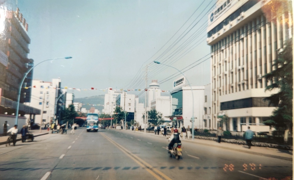 ▲00年代初,荊門市象山一路街景。8路雙層觀光巴士行駛在路上,沿路引來市民觀望,想要乘車體驗。當年二層車頭座位最搶手。