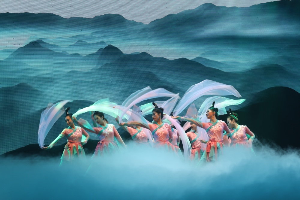 文藝表演在舞蹈《盛典禮贊》中拉開序幕,激昂熱烈的舞蹈表演,仿佛將人們帶回上世紀那段充滿激情的歲月。每一個舞步、每一個轉身都飽含著追求和信仰。