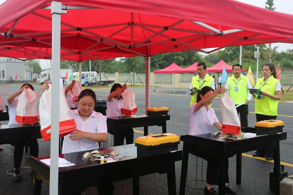 點鈔技能比武現場,6名參賽者手指翻飛,雖然現場觀眾眾多,但絲毫未影響其點鈔速度,她們憑借專注的精神和嫻熟的技能,充分展現著“老司機”的實力。最終,市公交集團營業中心全云以4分02秒的速度和100%的正確率斬獲冠軍。