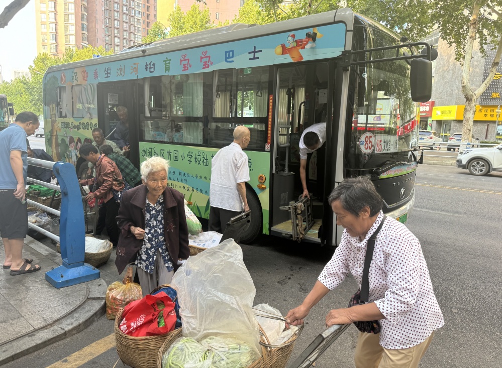 6時30分,石大娘趕到85路公交車始發站,她并不是最早一個,許多鄉親也正等待著“菜籃子”專車到來。