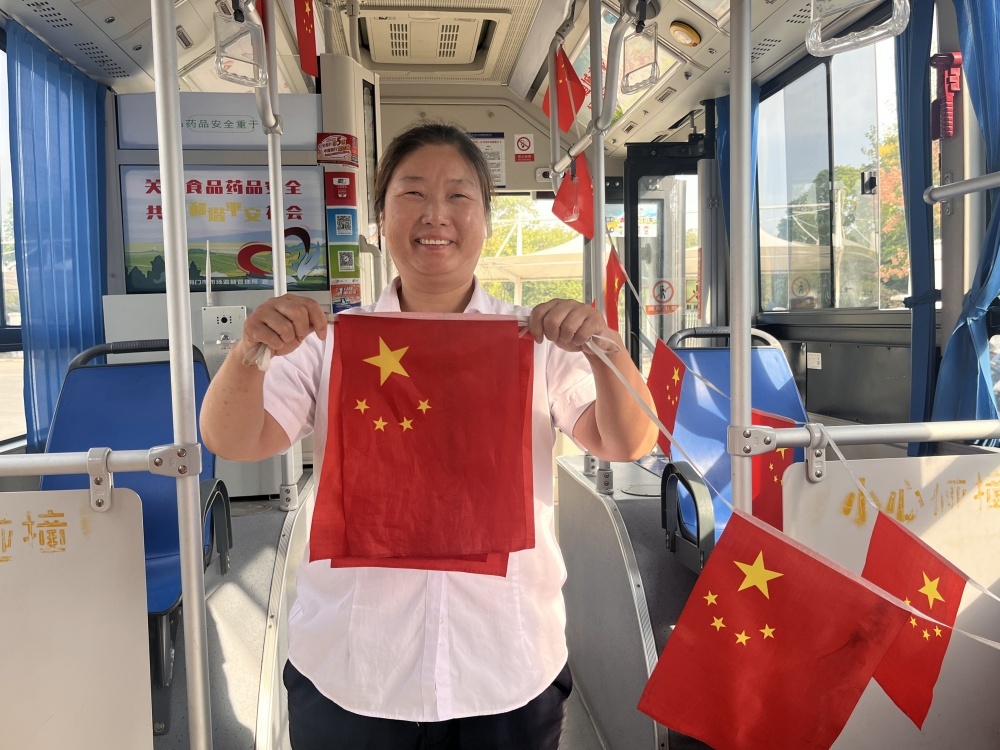 走進公交車廂,映入眼簾的是一面面鮮艷的小國旗,輕輕飄動,仿佛在向每一位乘客傳遞著節日的喜悅和祝福,除了車廂內部的裝飾,公交車輛的LED顯示屏也成為了重要傳播窗口,全天滾動播放國慶祝福語。這些細節布置不僅為車輛增添了節日色彩,也讓市民的出行體驗更加美好。