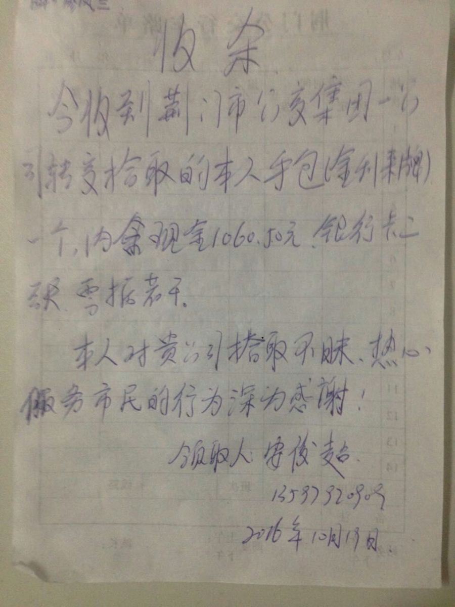 外環154駕駛員廖鳳蘭車內拾到錢包一個,交到公司后,失主聯系核實后領走。