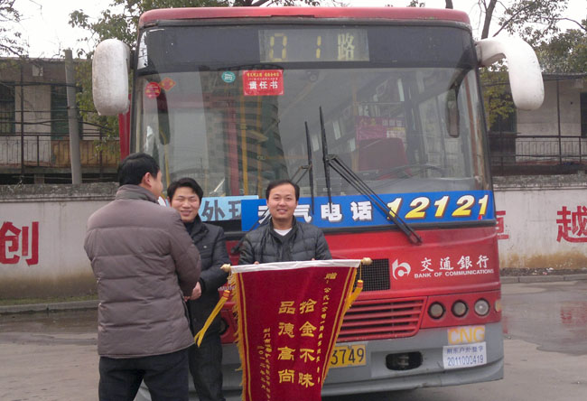 2月15日,荊門市銀都礦業(yè)有限公司總經(jīng)理鄒詩發(fā)等一行3人專程來到市公交一公司,向一公司負責人張忠林贈送了一面寫著“拾金不昧、品質(zhì)高尚”的錦旗,專門感謝1路駕駛員李想拾到其遺失在公交車上15萬貨款。