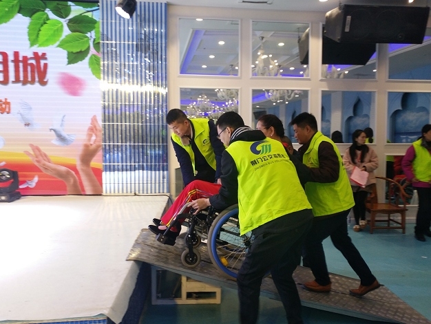 11月30日在荊門市殘疾人聯合會、荊門市智力殘疾人及親友協會、荊門市圓夢愛心幫扶會舉辦的主題為“包容殘疾人 創建文明城” 的“2018‘國際殘疾人日’紀念活動中,16名荊門公交志愿者在引導、簽到、幫助殘疾人出行、舞臺道劇、督導等志愿活動中,受到殘疾朋友們真誠的感謝和與會嘉賓、領導們的一致好評。